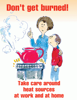 Use this poster to highlight the burn hazards involved in everyday tasks